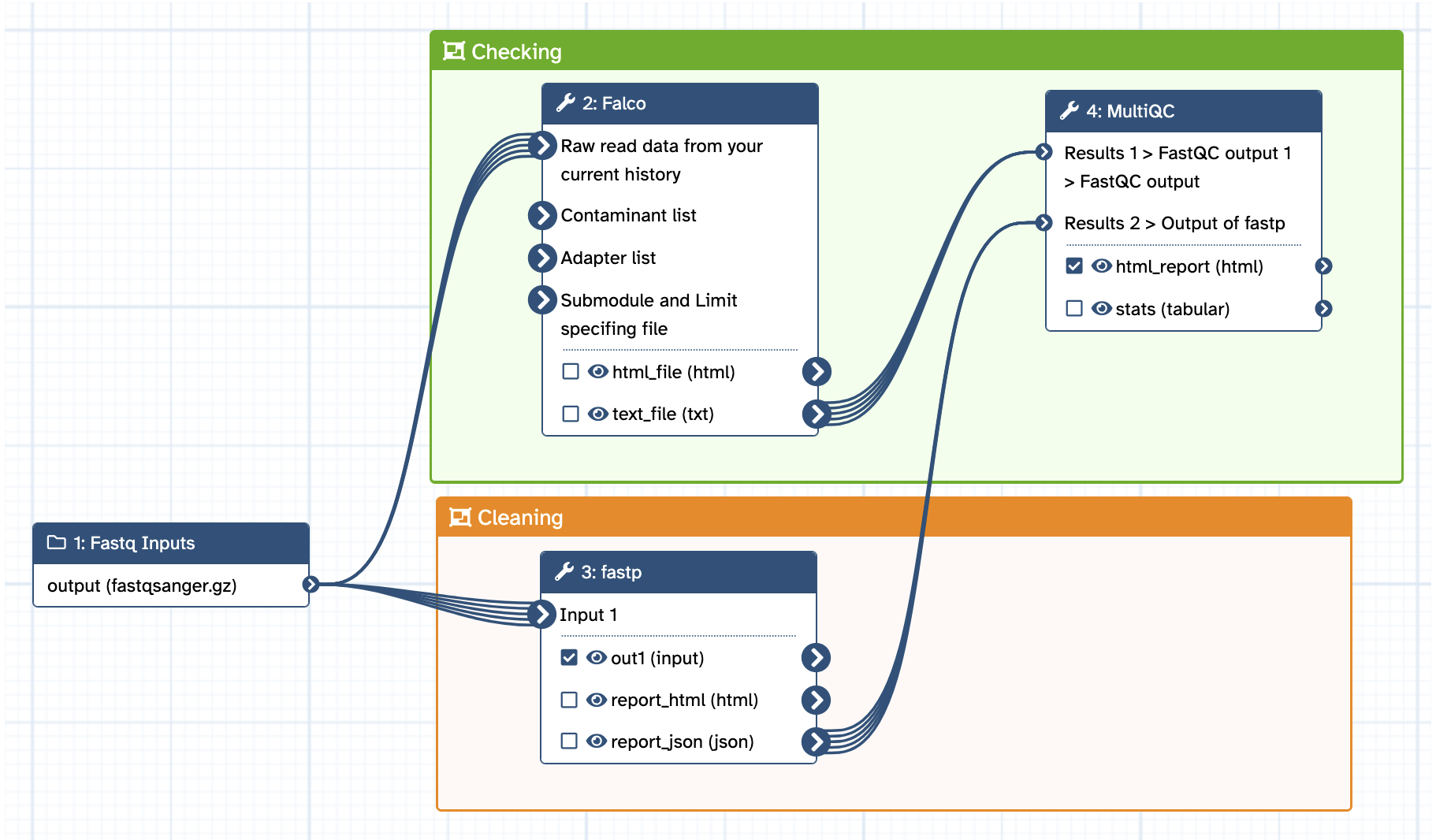 planemo run <WORKFLOW_ID> Galaxy-Workflow-Fastq_cleaning_and_check-job.xml --galaxy_url <SERVER_URL> --galaxy_user_key <YOUR_API_KEY> --outdir.--download_outputs